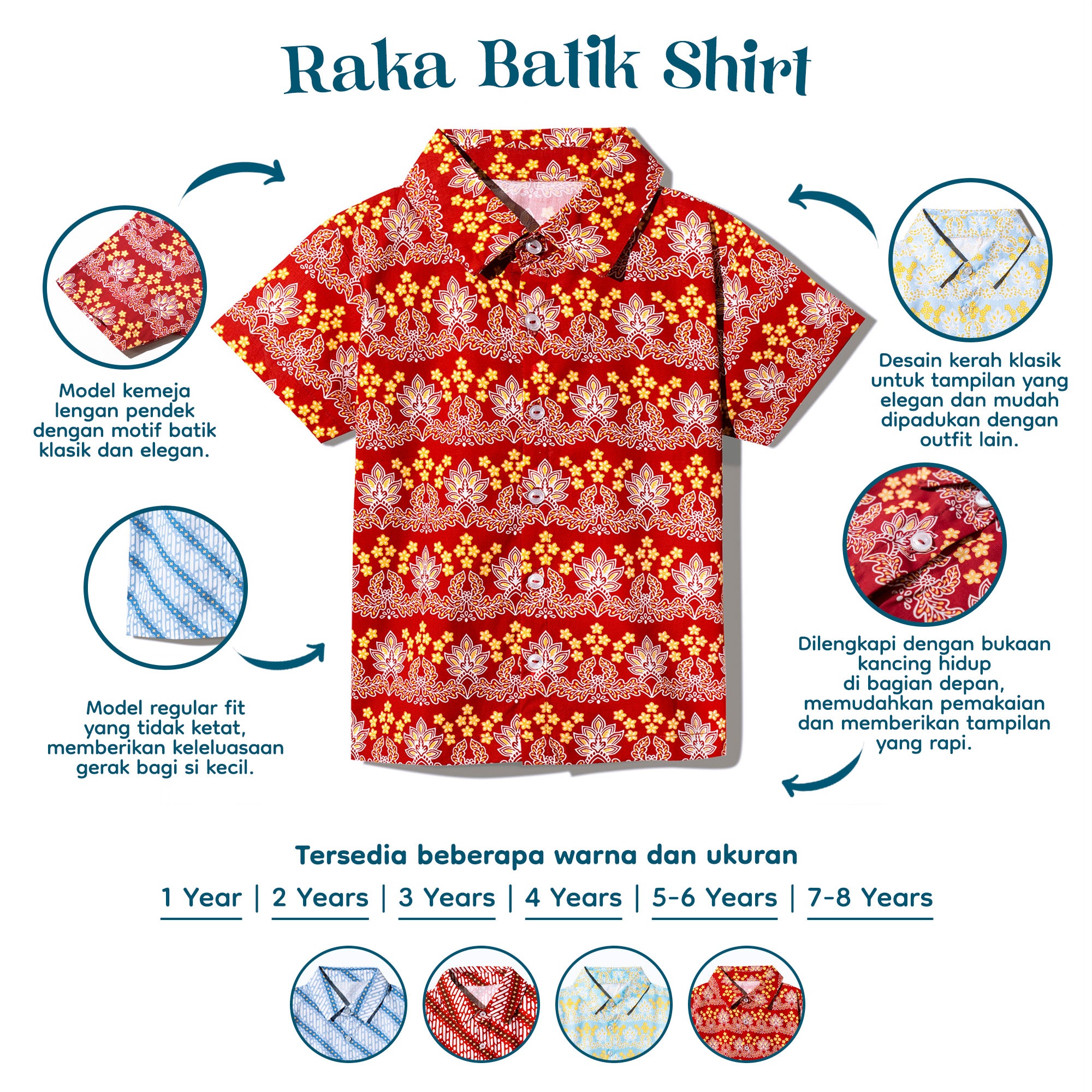 Raka Batik Shirt Kids adalah pilihan tepat untuk si kecil tampil rapi di berbagai acara spesial maupun sehari-hari.  Kemeja Batik berlengan pendek dengan desain modern yang dipadukan motif batik klasik menawan. Menjadikan penampilan anak tampak rapi, manis, dan stylish berbudaya.  Ideal digunakan untuk acara keluarga, pesta, sekolah, Hari Batik Nasional, atau bahkan dipakai santai saat jalan-jalan.