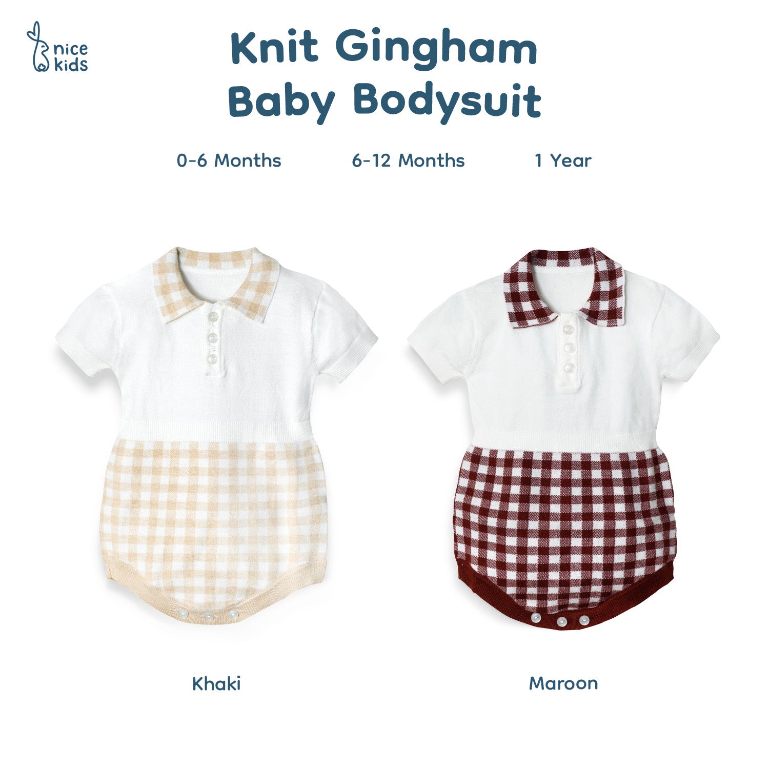 Nice Kids - Gingham Knit Bodysuit (Jumper Bayi New Born Unisex 0-12 Bulan)