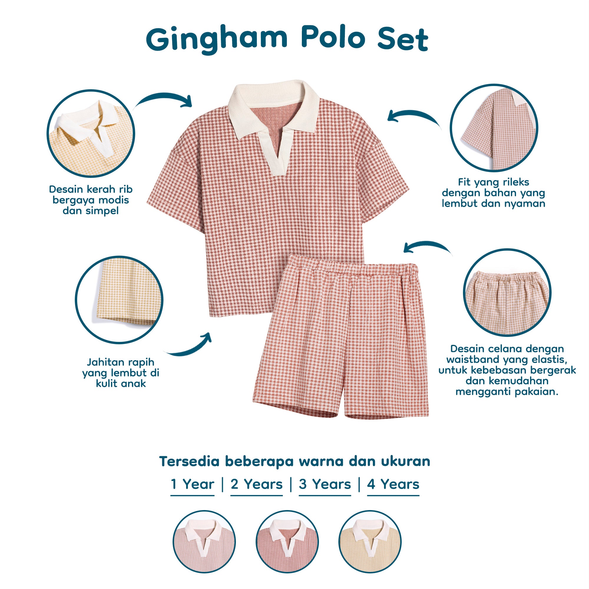 Gingham Polo Set hadir untuk membuat penampilan si kecil makin modis dan tetap nyaman. Dengan desain polo klasik berpadu motif gingham yang elegan, setelan ini cocok untuk acara santai hingga semi-formal Jangan khawatir ya, karena bahan yang digunakan juga HYPOALLERGENIC (tidak membuat alergi atau tidak mengandung bahan kimia berbahaya) sehingga sangat aman untuk digunakan. Kami pastikan Gingham Polo Set ini memberikan kenyamanan di segala musim.