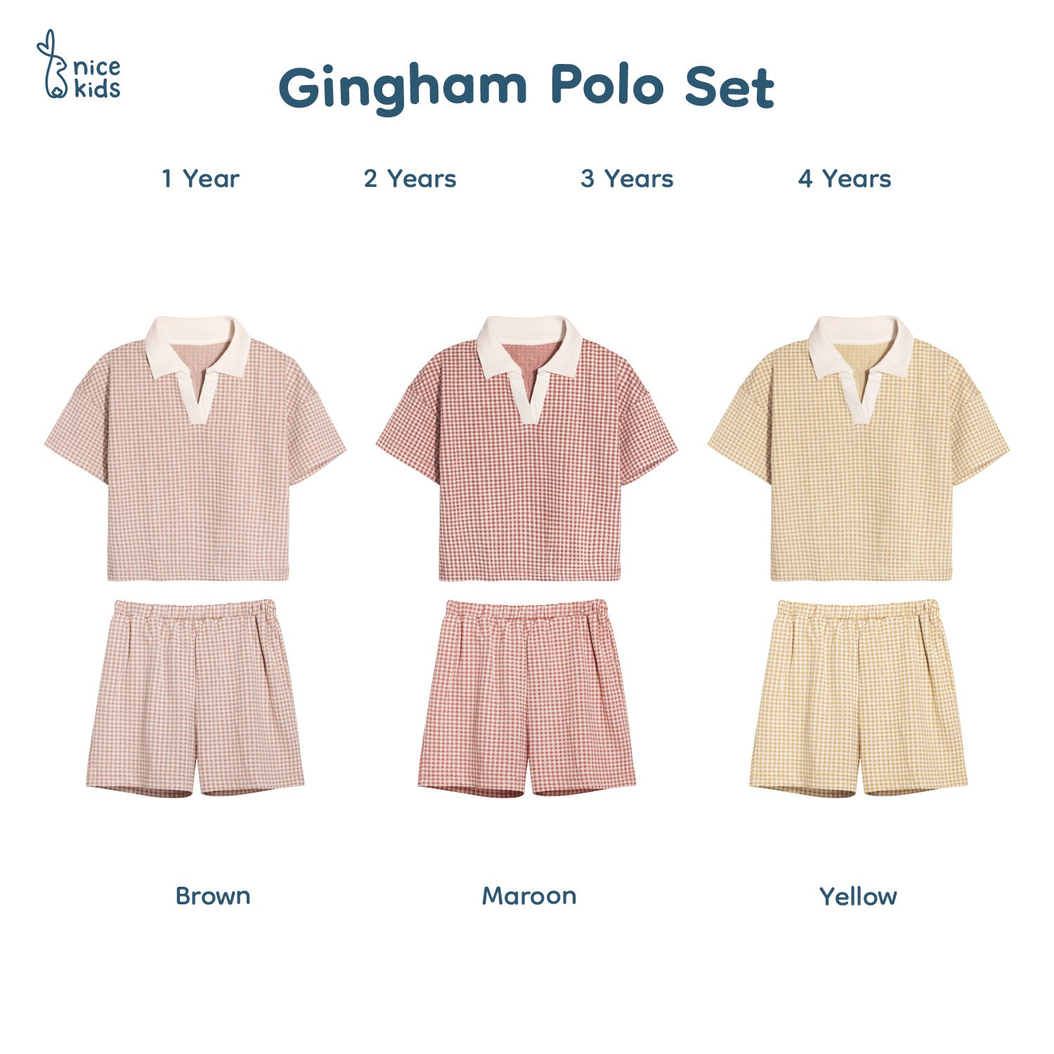 Nice Kids - Gingham Polo Set Setelan Atasan Kerah Celana Pendek Anak Laki-Laki