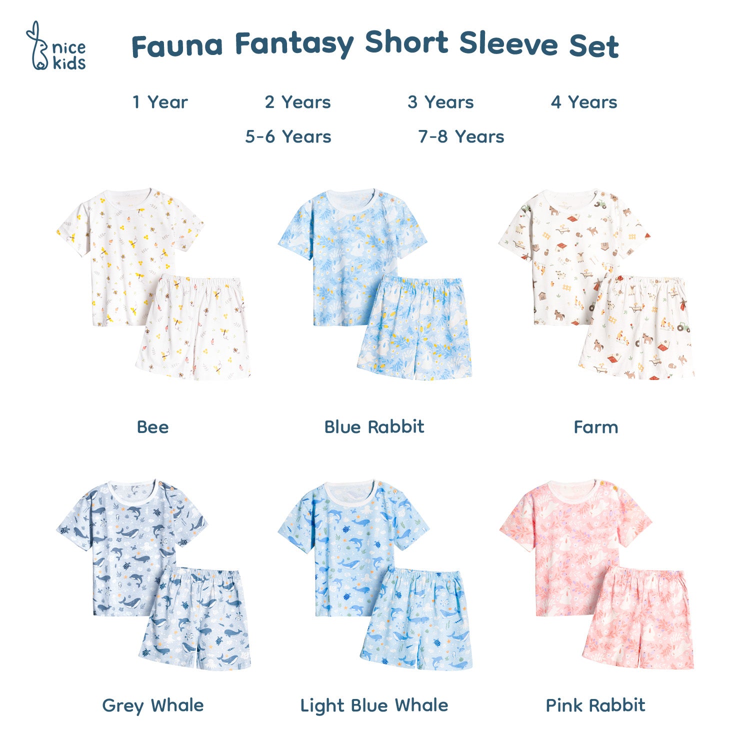 Nice Kids - Short Sleeve Pajamas Fauna & Fantasi Collection (Setelan Piyama Anak Tangan Pendek, Baju Tidur Set Anak, Baju Motif Hewan dan Tumbuhan)