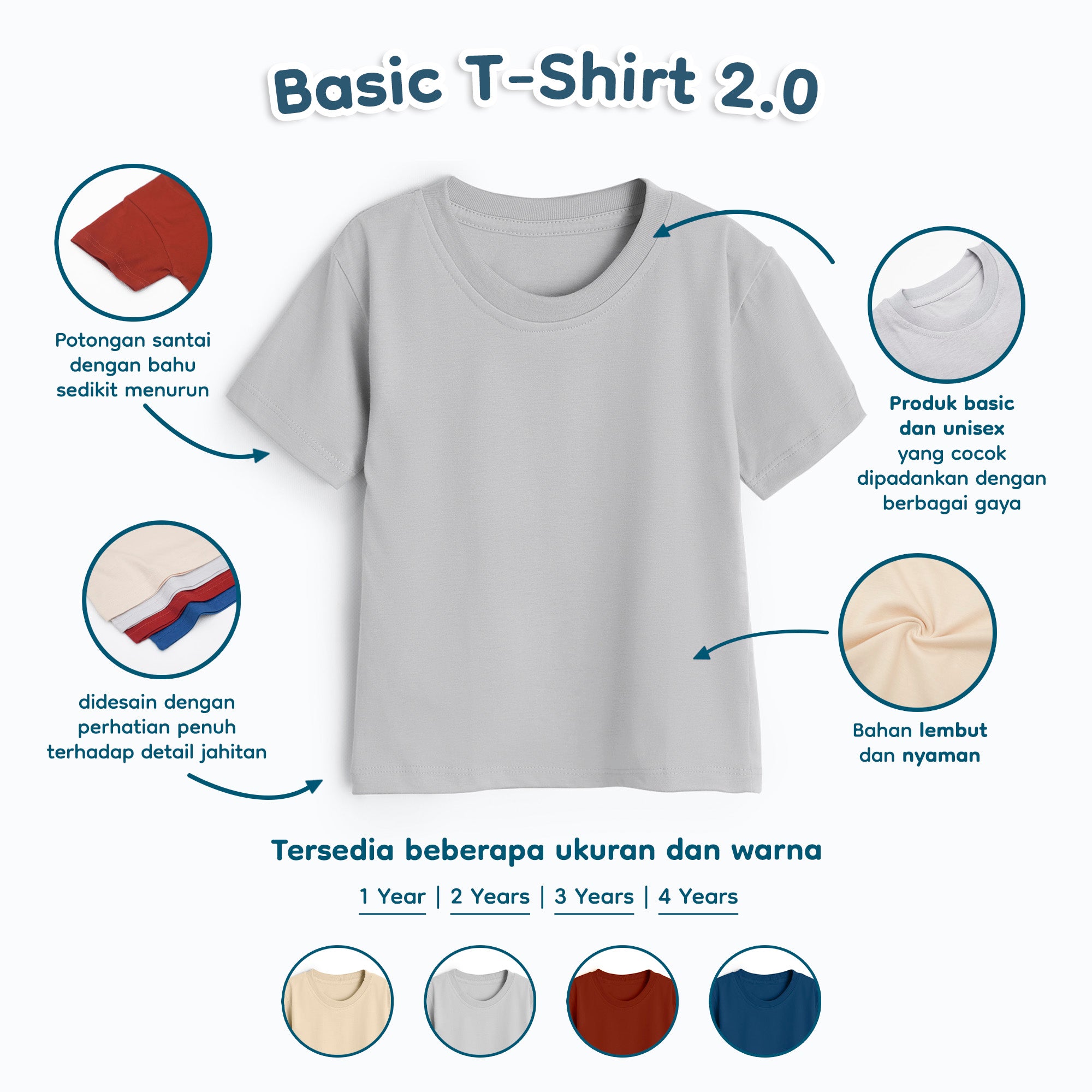 Kami pastikan Basic T-Shirt New Color ini memberikan kenyamanan pada sang buah hati sepanjang tahun di segala musim.