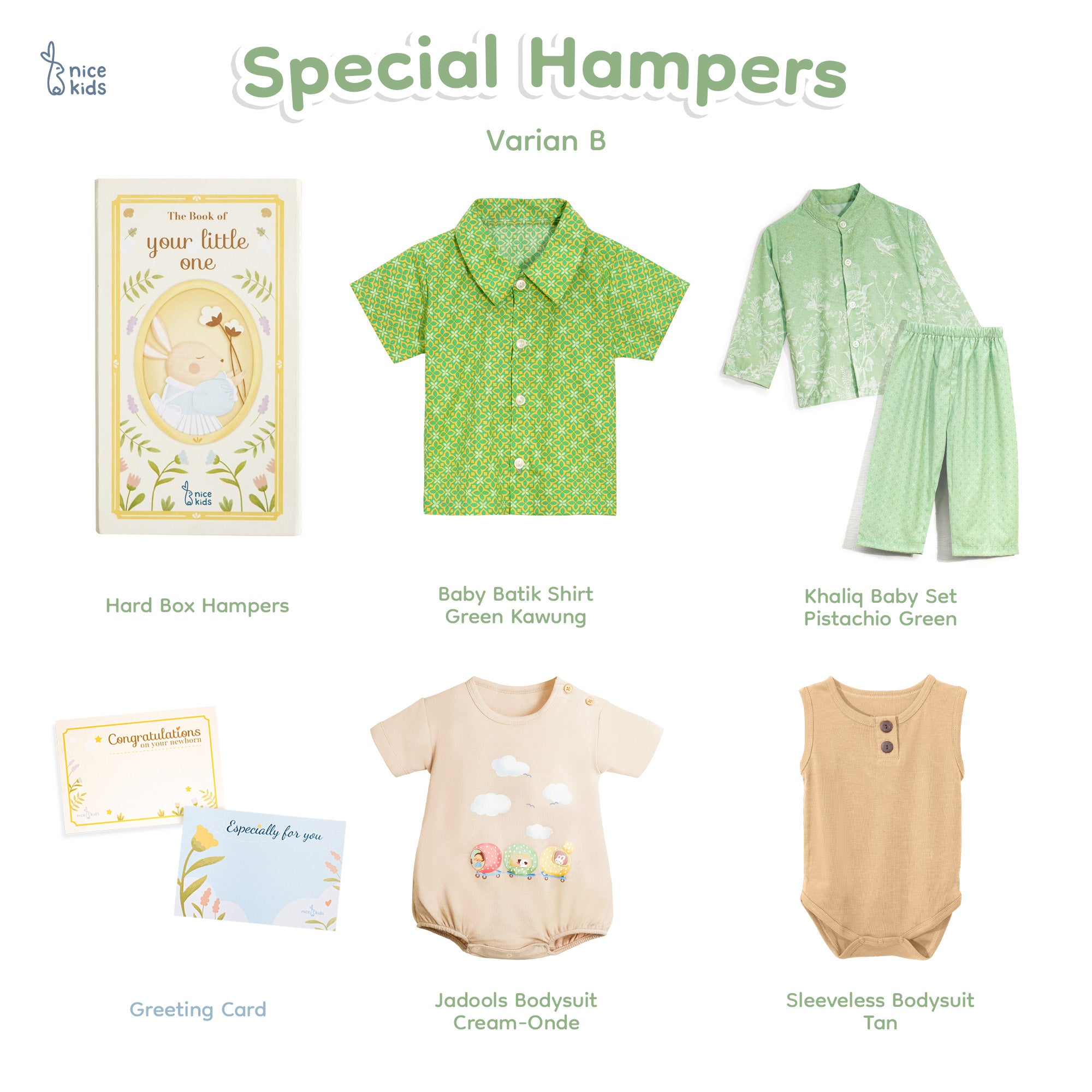 Hampers ini bervariasi isinya tergantung sesuai kebutuhan, mau dari yang simple sampai yang komplit.