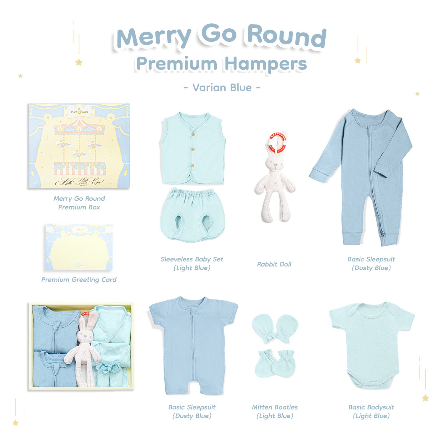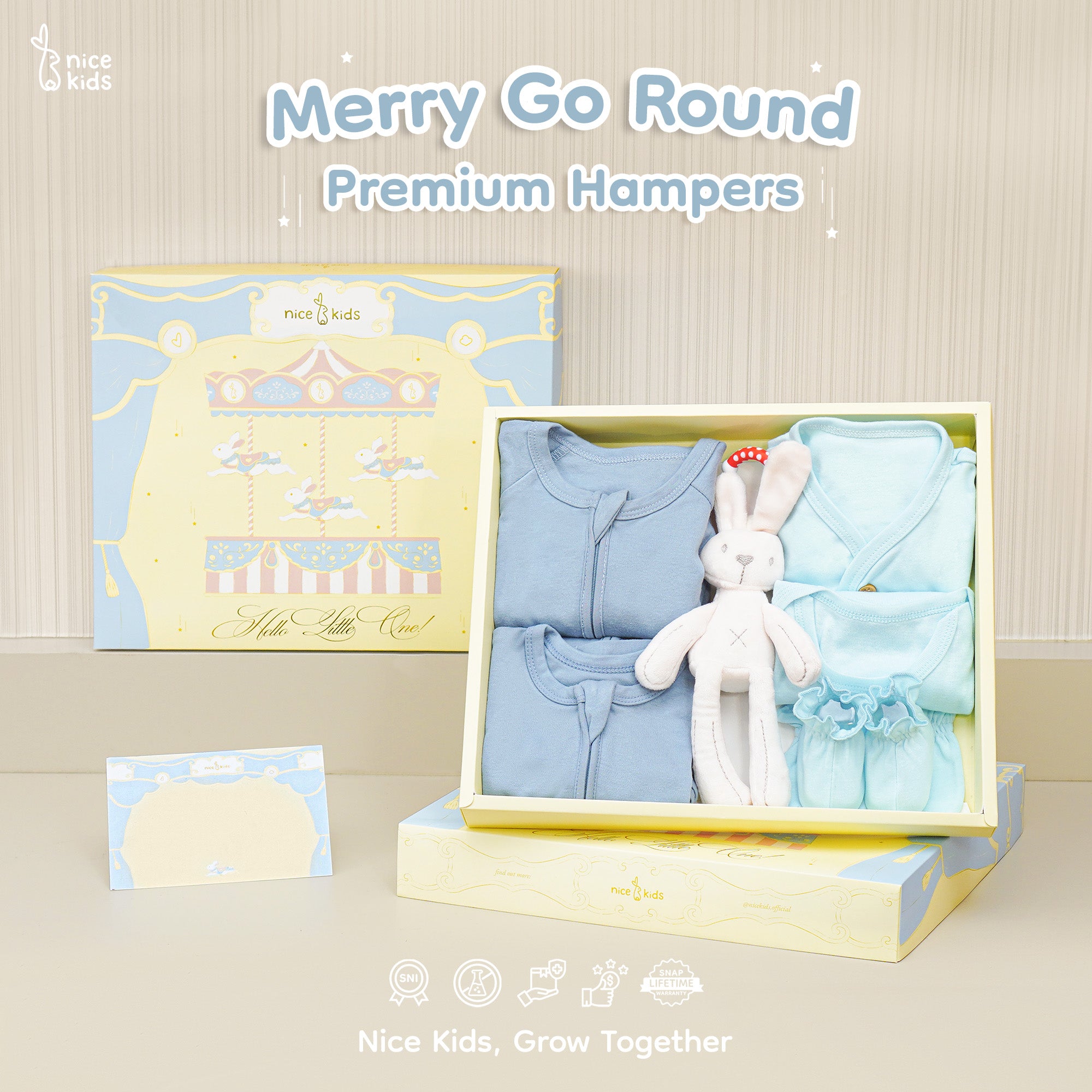 Selamatkan momen indah kelahiran seorang bayi dengan "Merry Go Round" hampers pakaian bayi premium kami yang dirancang khusus untuk memberikan kenyamanan dan gaya. Dibuat dengan perhatian tinggi terhadap detail, setiap item dalam koleksi ini memancarkan kemewahan dan kelembutan untuk bayi yang baru lahir.