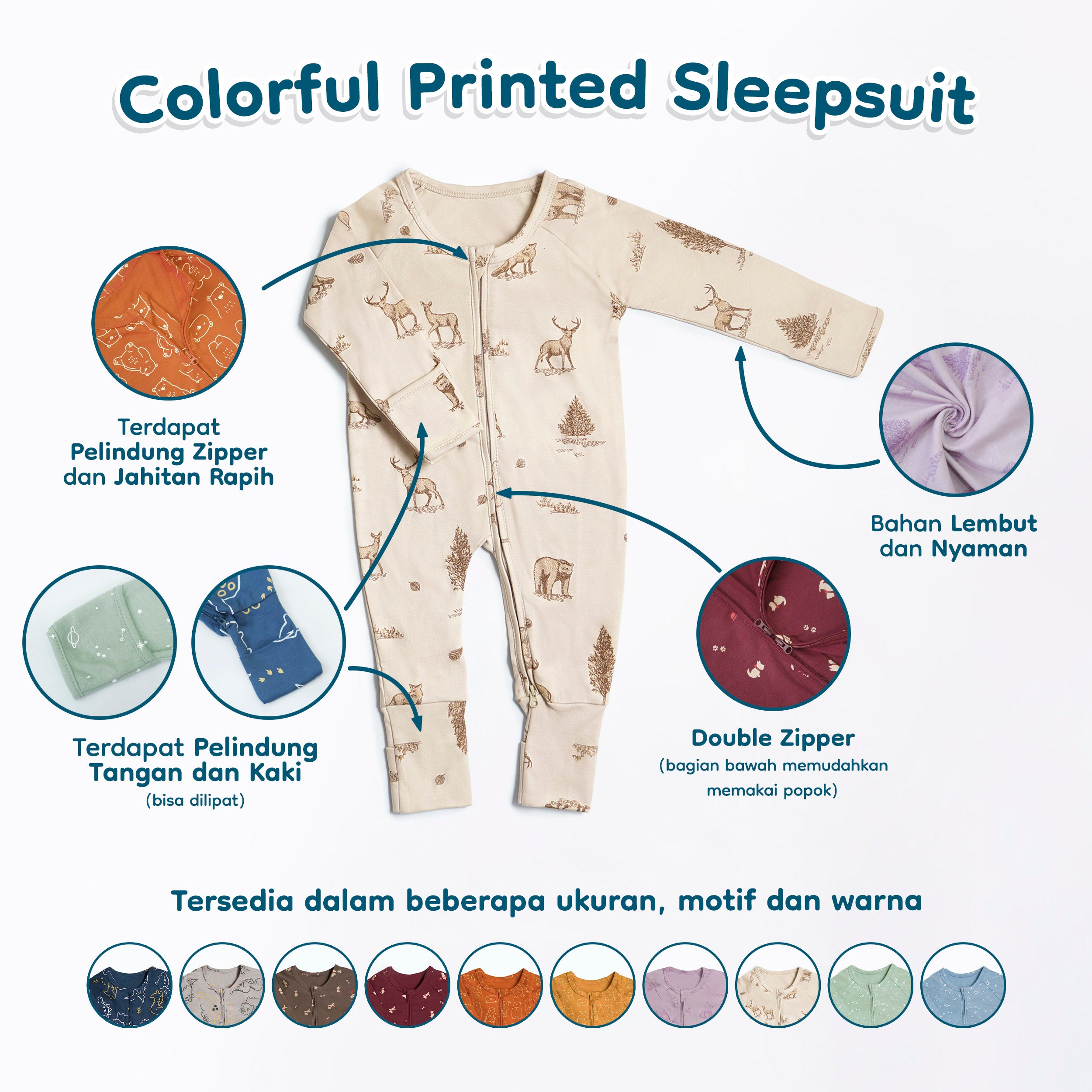 Kami pastikan sleepsuit ini memberikan kenyamanan pada sang buah hati sepanjang tahun di segala musim.