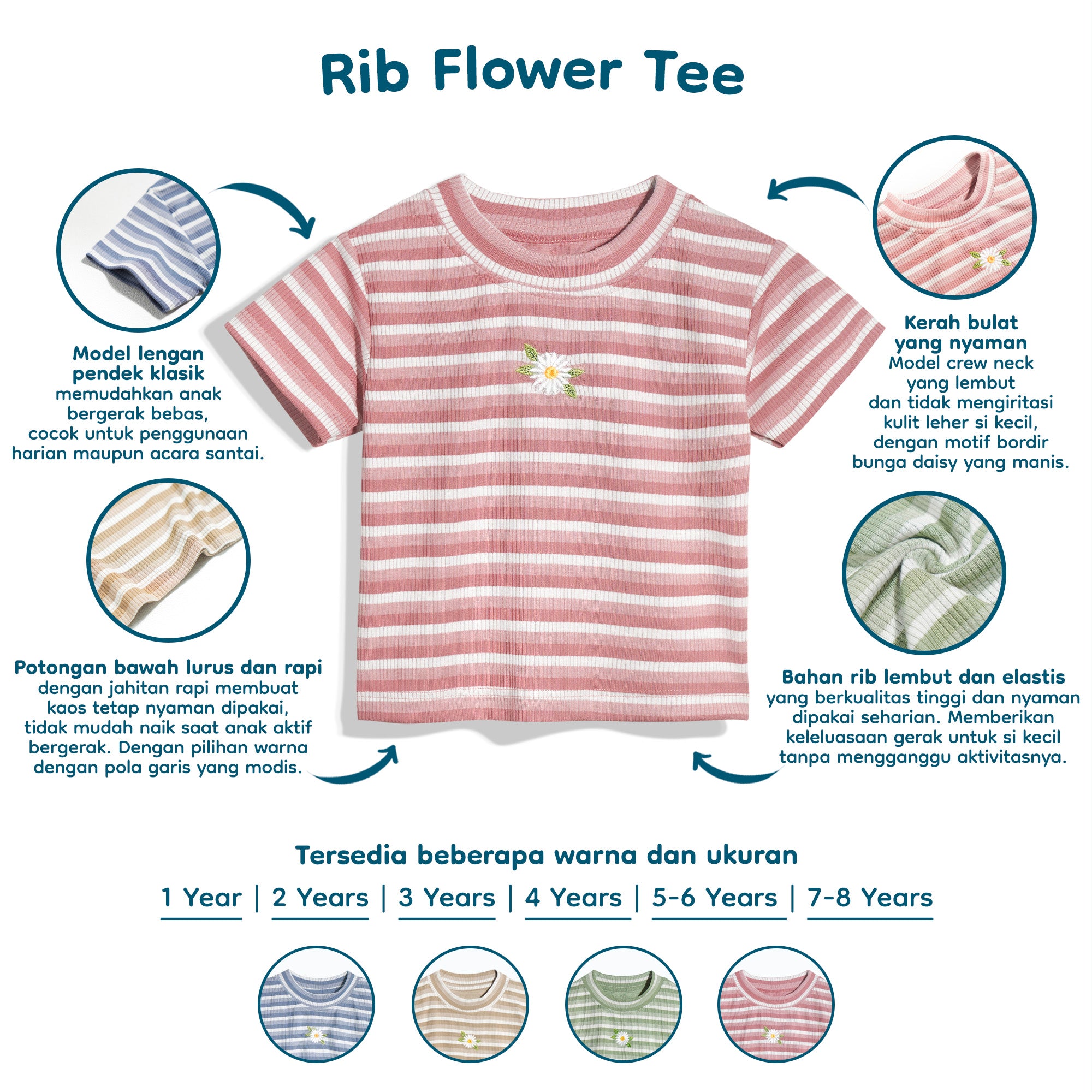 Rib Flower Tee ini dirancang untuk memberikan kenyamanan maksimal sepanjang hari.