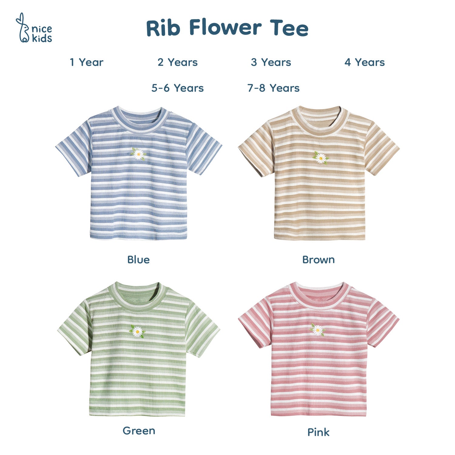 Nice Kids - Flower Rib Tee Shirt Kaos Garis Bunga Anak Perempuan