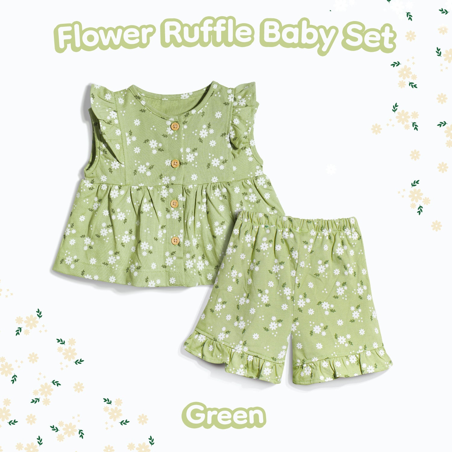 Flower Ruffle Baby Set berbahan ..... ini dirancang untuk memberikan kenyamanan maksimal sepanjang hari.  Setelan baju anak perempuan ini hadir dengan motif bunga yang cantik dan detail ruffle yang feminim. Cocok dipakai harian, jalan-jalan, atau untuk acara spesial!