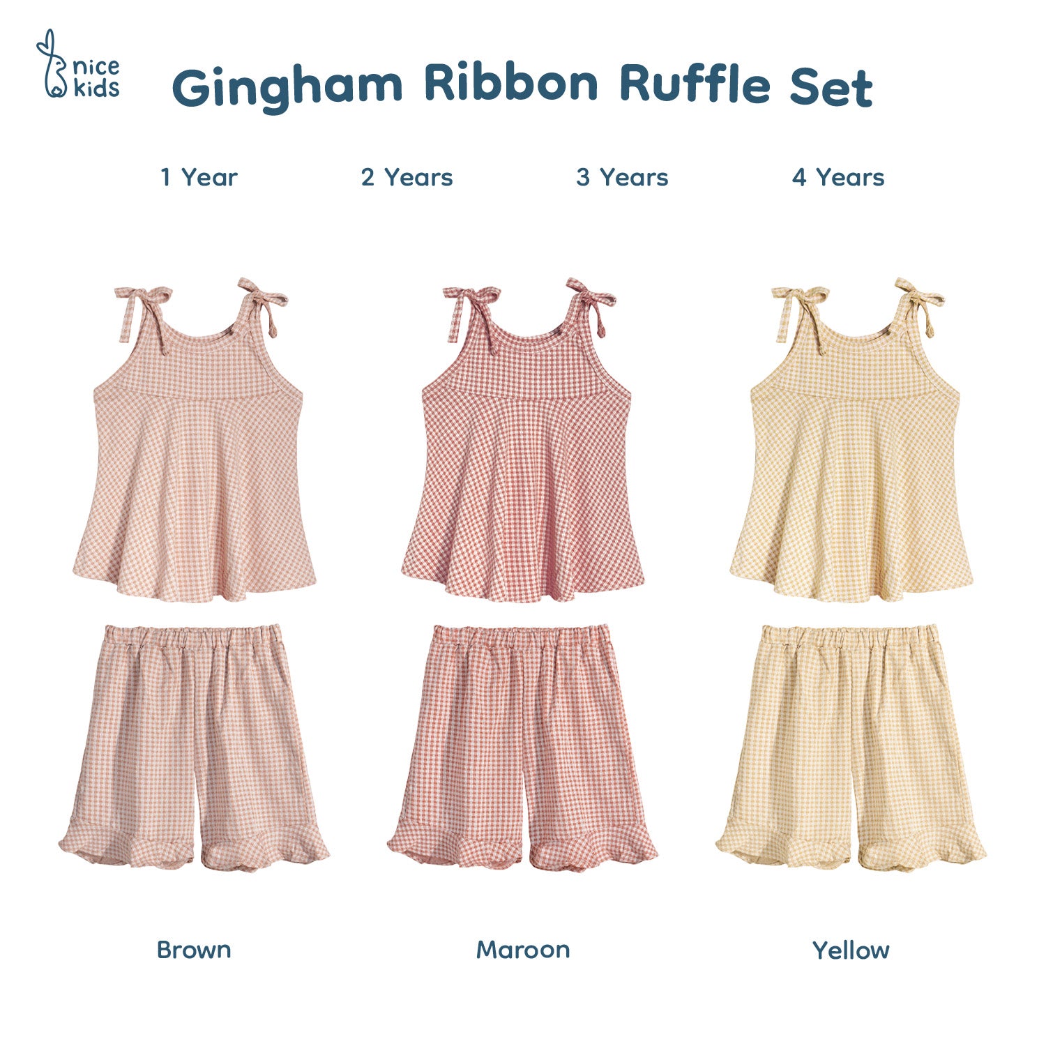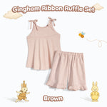 Nice Kids - Gingham Ribbon Set Setelan Tanktop Pita Celana Pendek Anak Perempuan