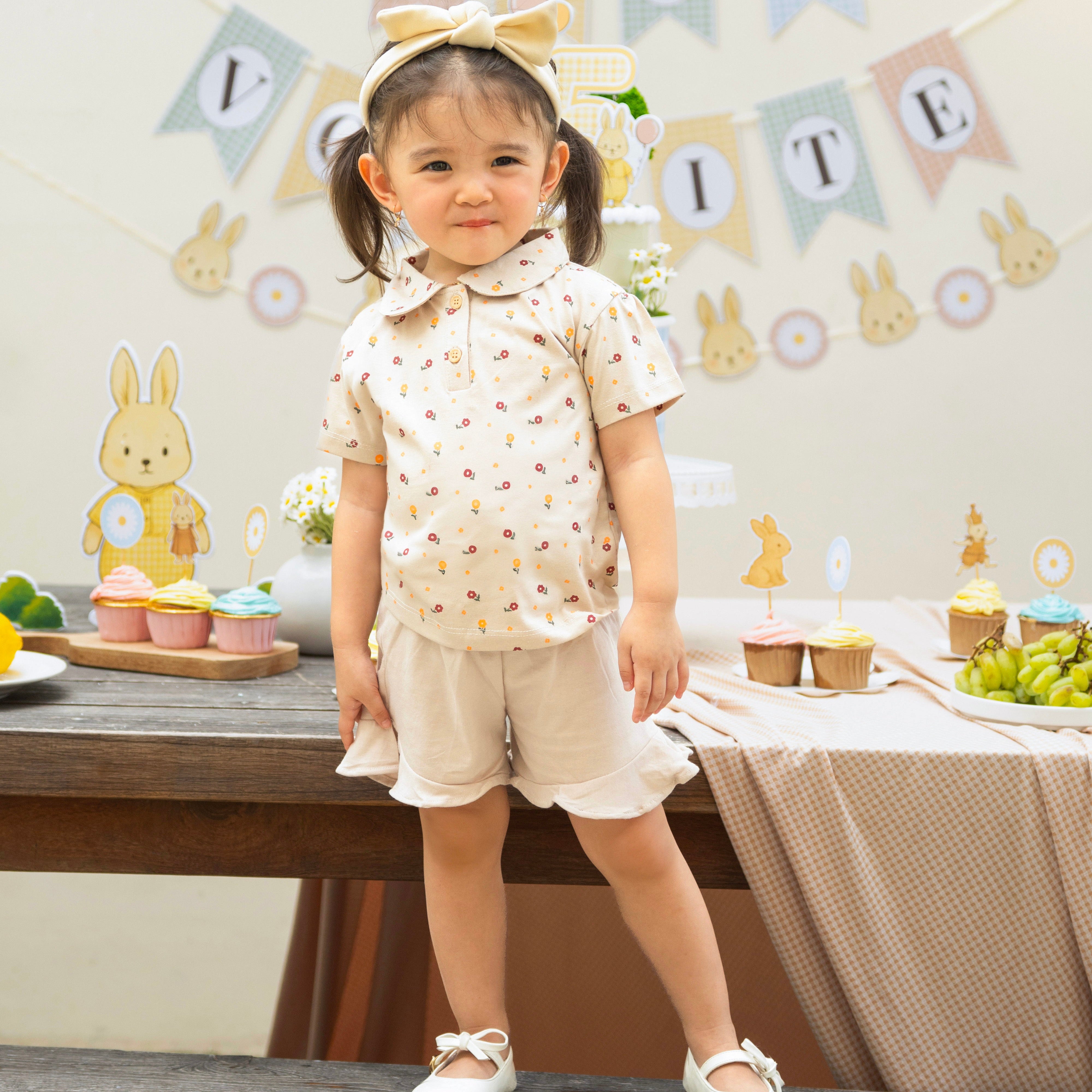 Nice Kids - Lily Ruffle Short Set Setelan Aatasan Kaus Bunga Celana Pendek Anak Perempuan