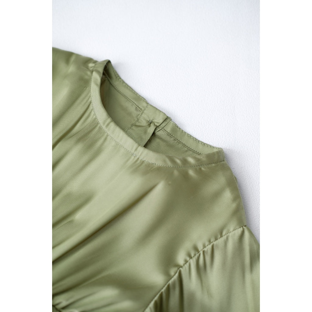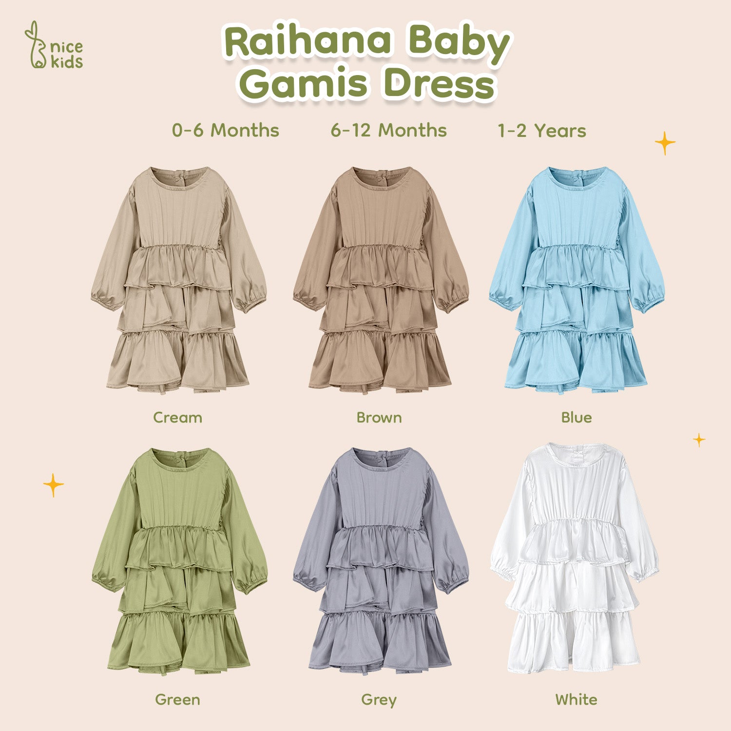 Produk "Baby Raihana Gamis Dress" memiliki desain yang khusus disesuaikan untuk anak bayi, dengan detail yang lucu dan ceria. Dengan menggunakan bahan Armani Silk, produk ini mungkin memberikan kenyamanan dan kelembutan pada kulit si kecil. Selain itu, kain sutra buatan memberikan tampilan yang mewah dan elegan.