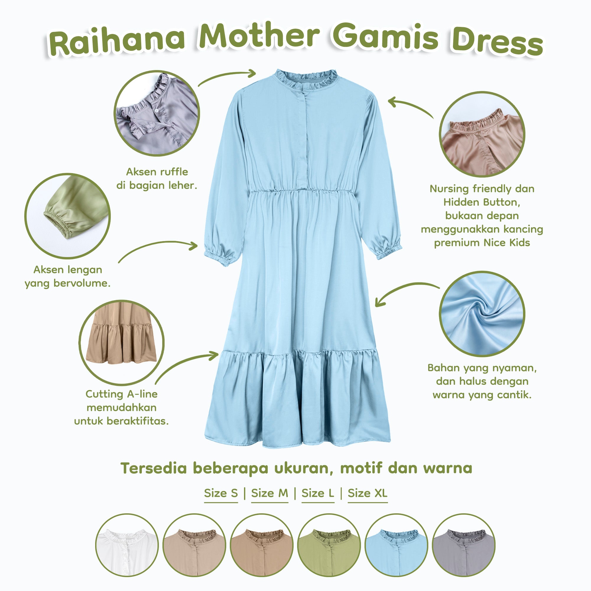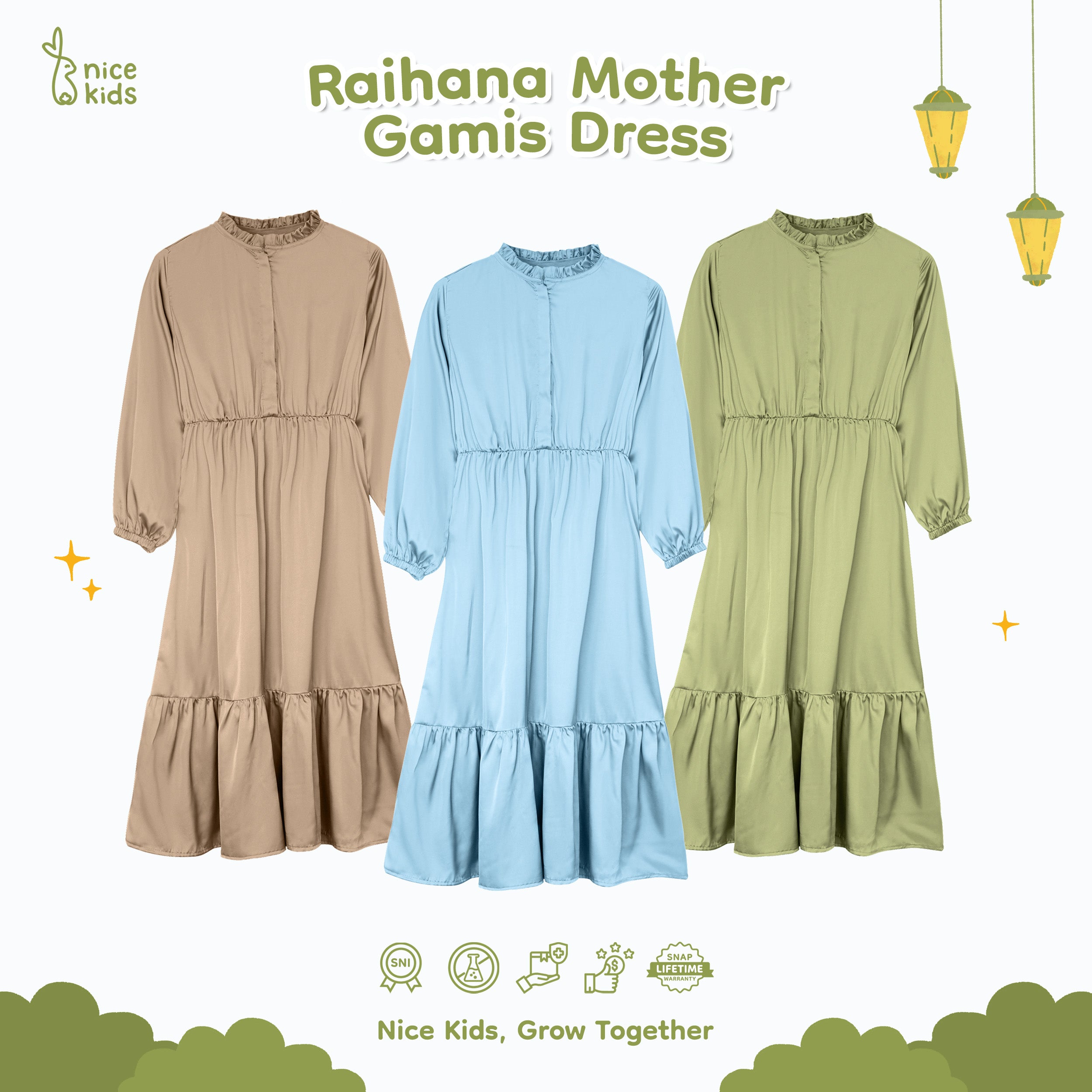 "Raihana Mother Gamis Dress" adalah pilihan yang sempurna untuk ibu yang menginginkan gaya yang elegan dan anggun. Dibuat menggunakan bahan Armani Silk yang berkualitas tinggi, gaun ini menawarkan sentuhan yang mewah dan lembut pada kulit.