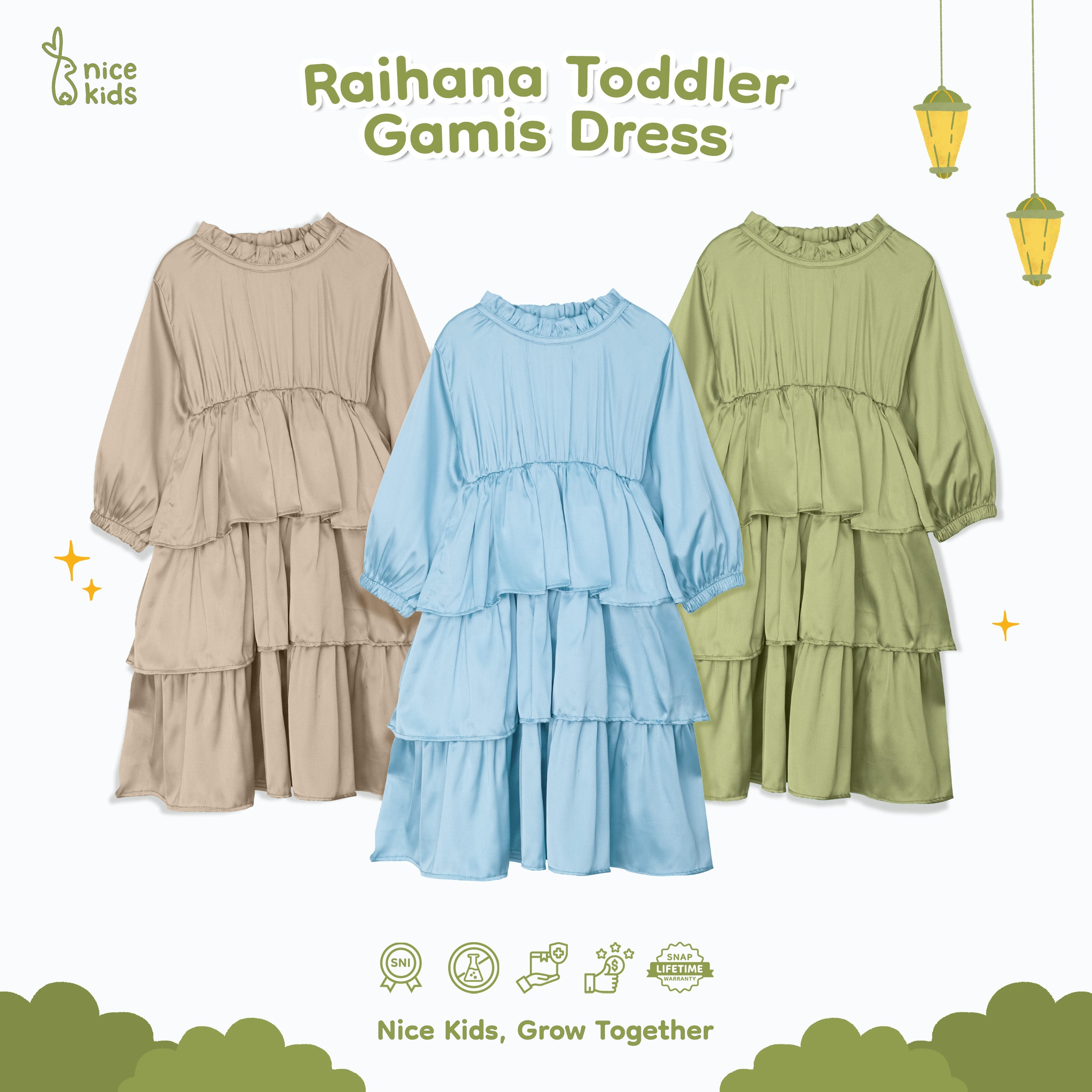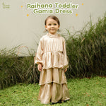 Produk "Raihana Gamis Dress" memiliki desain yang khusus disesuaikan untuk anak balita, dengan detail yang lucu dan ceria. Dengan menggunakan bahan Armani Silk, produk ini mungkin memberikan kenyamanan dan kelembutan pada kulit si kecil. Selain itu, kain sutra buatan memberikan tampilan yang mewah dan elegan.