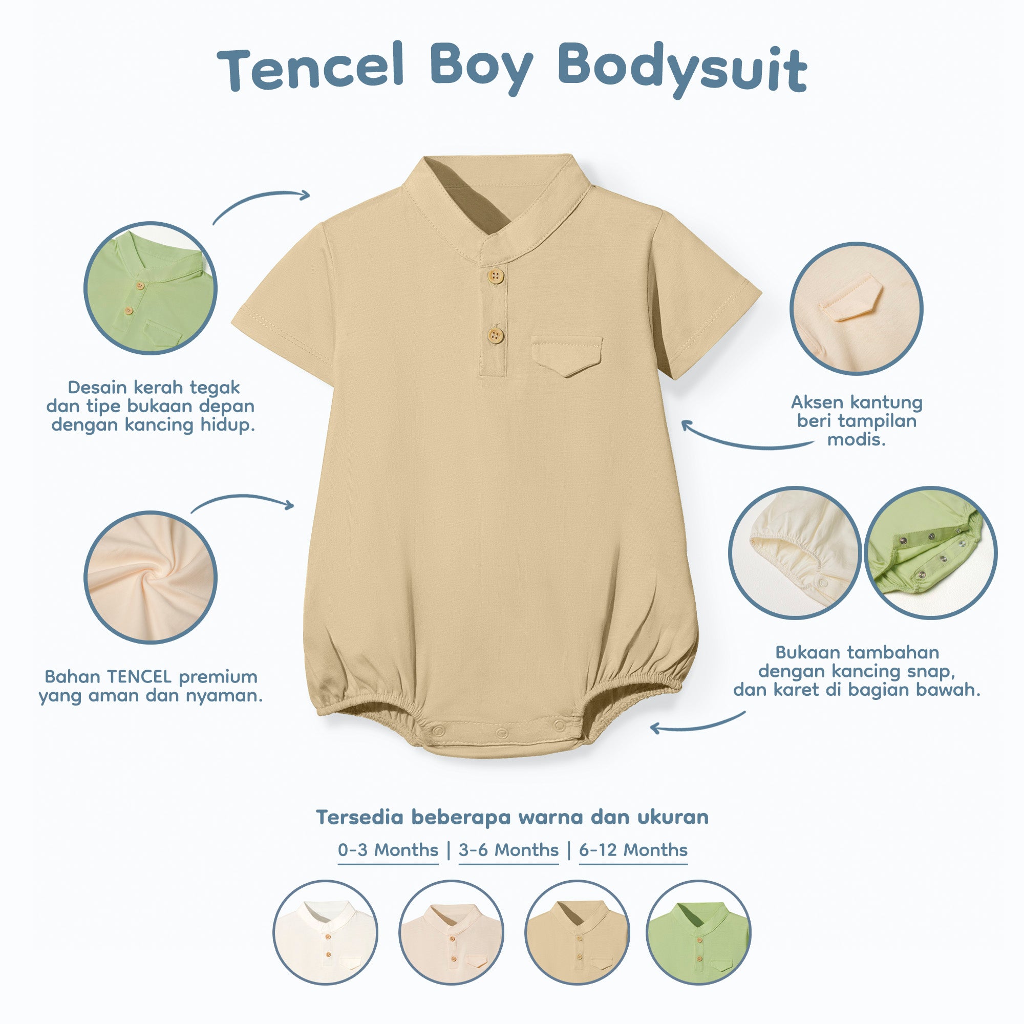 Tencel Bodysuit Boy Premium Jumper Bayi Laki-Laki New Born dibuat dari serat Tencel yang ramah lingkungan, lembut, dan jangan juga hypoallergenic (tidak membuat alergi atau tidak mengandung bahan kimia berbahaya) sehingga sangat aman untuk sang buah hati..