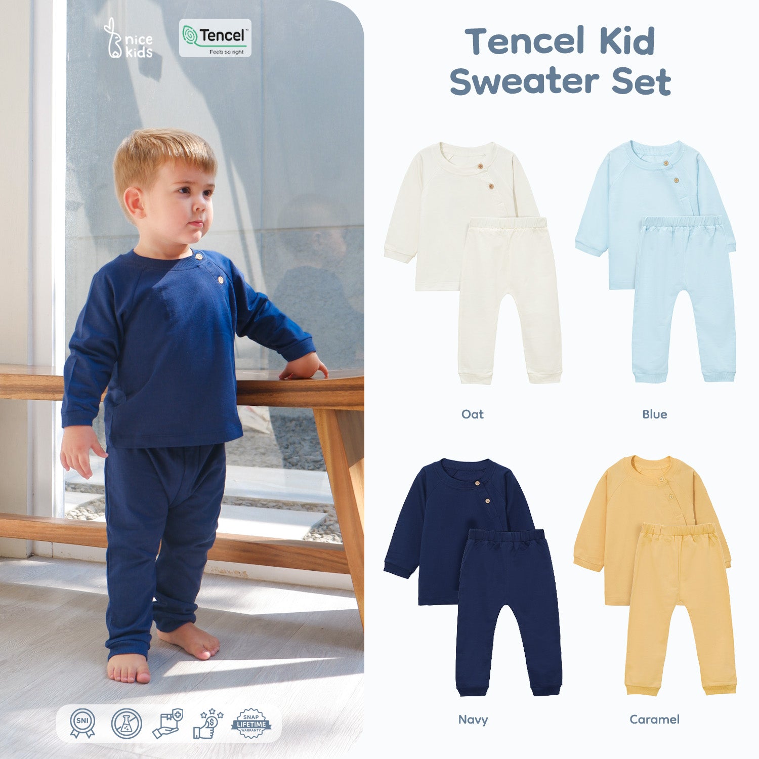 Kami pastikan Tencel Kids Sweater Set ini memberikan kenyamanan pada sang buah hati sepanjang tahun di segala musim.
