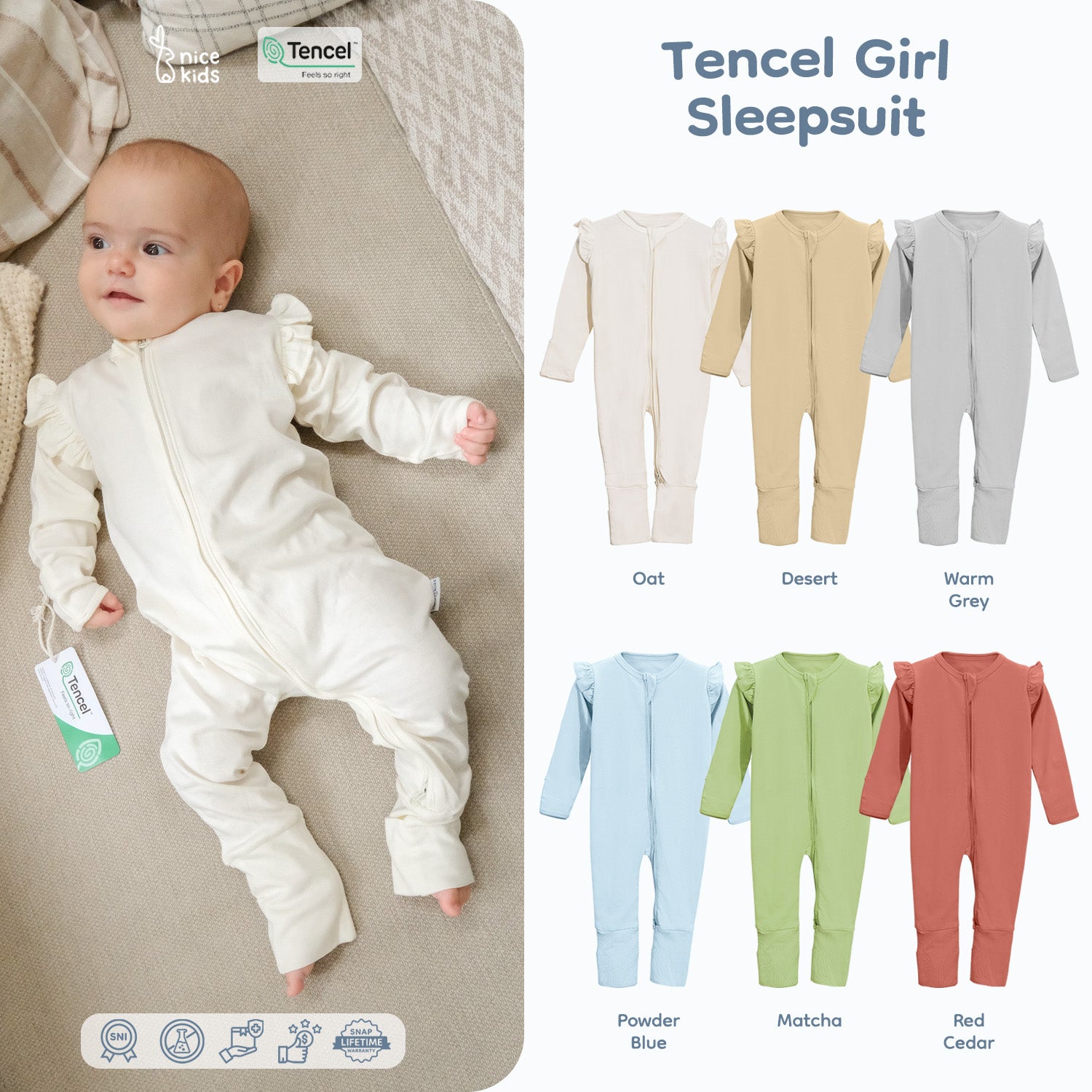 Tencel Sleepsuit Girl Jumper Baby Baju Tidur Bayi Perempuan dibuat dari serat Tencel yang ramah lingkungan, lembut, dan jangan juga hypoallergenic (tidak membuat alergi atau tidak mengandung bahan kimia berbahaya) sehingga sangat aman untuk sang buah hati..